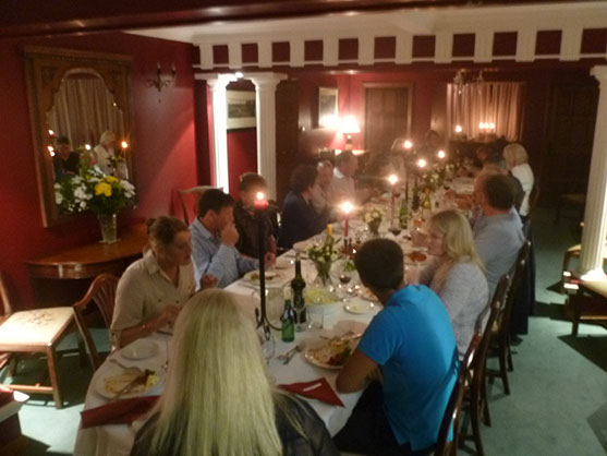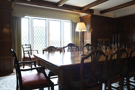 One of the joys of Northfields is being able to seat everyone who stays at the house at one long dining room table in the pillared hall, this can comfortably seat 28 guests, and for smaller groups the oak paneled dining room seats up to 16 guests. We are able to offer a drop off or waitress served full in house catering service, and equally all the main super markets deliver to the house.