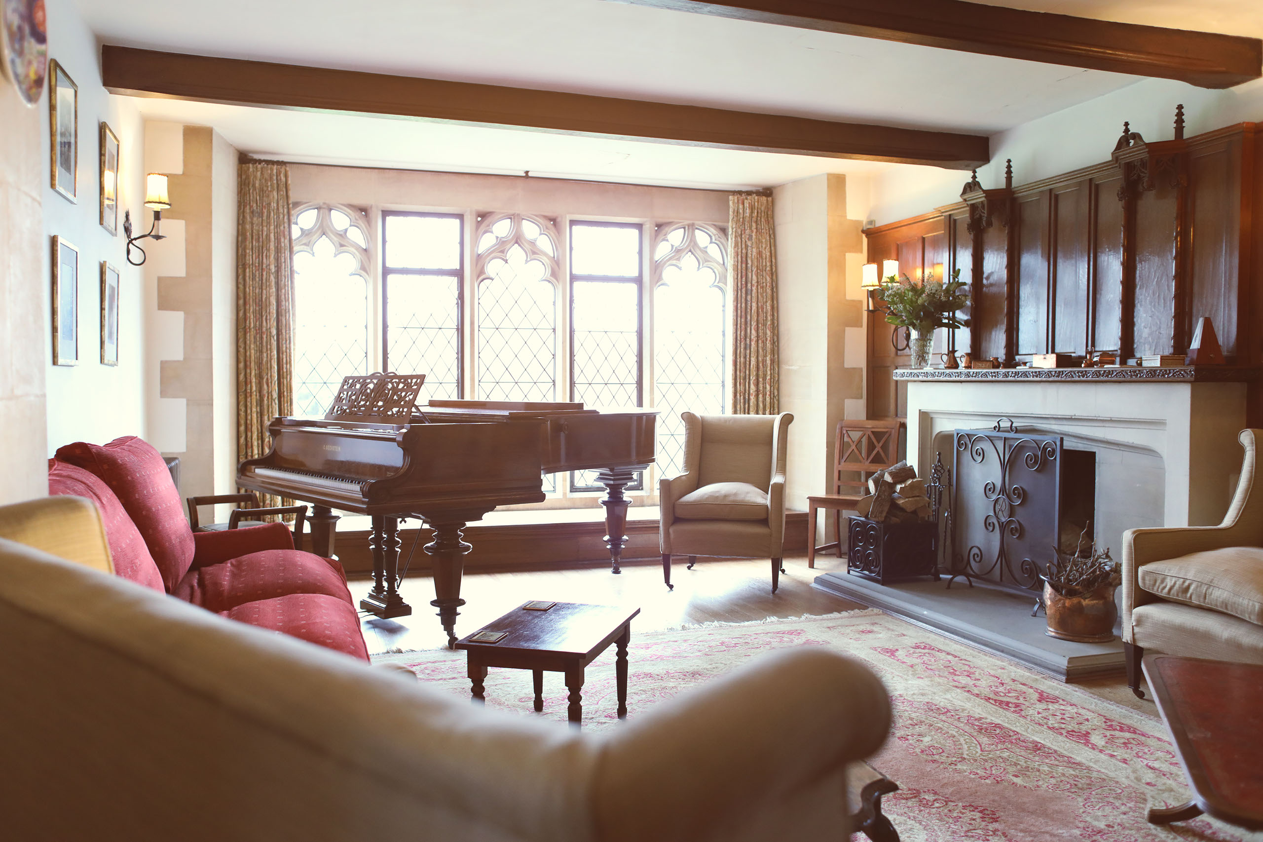 Set in 5 acres of mature gardens with an outdoor heated swimming pool, a beautifully maintained grass tennis court and a croquet lawn, Northfields also has its own squash court attached to the house with a viewing gallery off the main landing. There is a games room with a quarter size billiard table, table football, an assortment of toys for children and an 8’ 1 Bechstein Grand piano in the music room which is kept at concert pitch.
